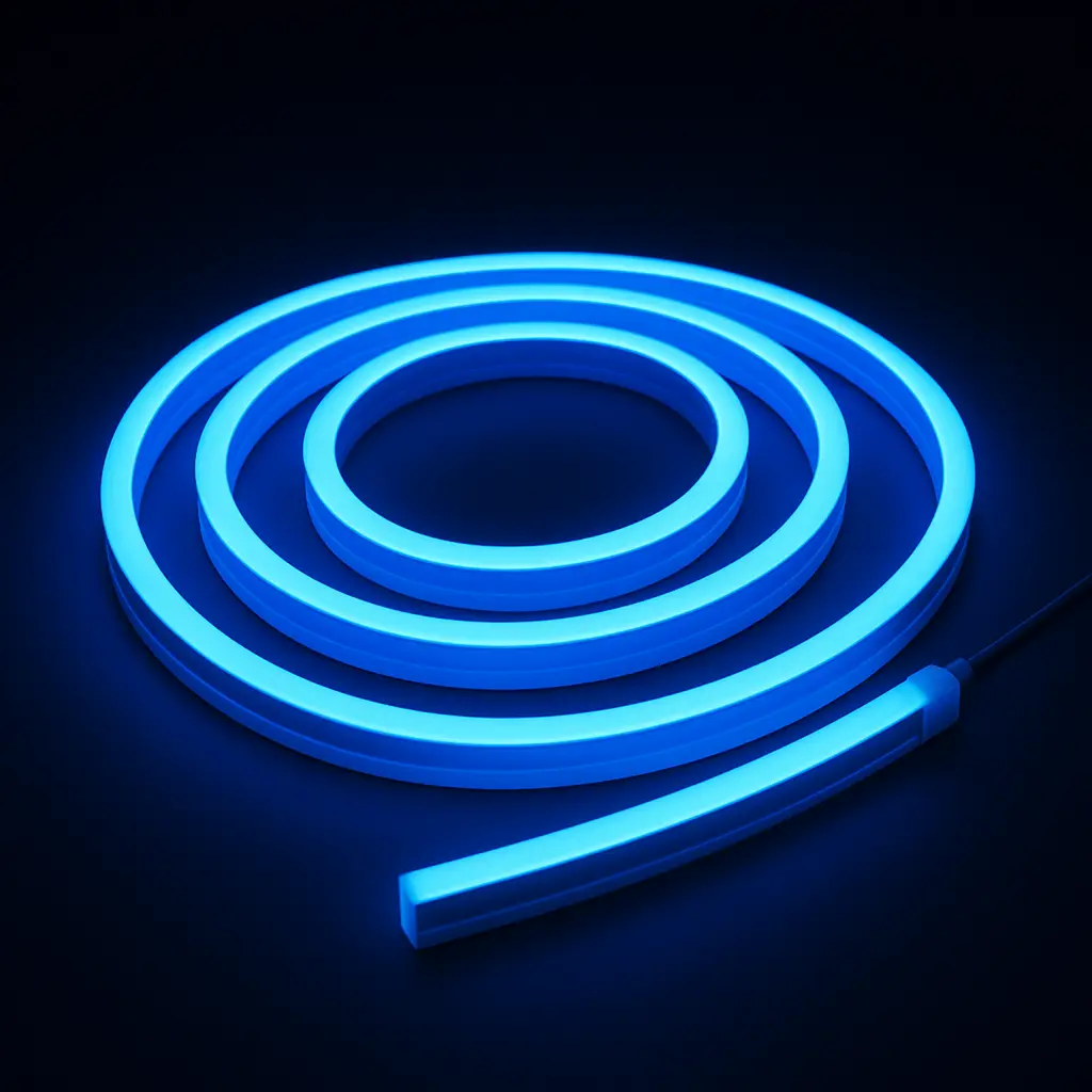 نئون الایدی آبی 10 متری با طراحی فلکسیبل و انعطافپذیر خود، برای اجرای انواع پروژههای نورپردازی محیطی و تزئینی مناسب است.